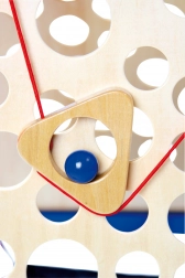 Coșul textil dintre panouri prinde biluțele căzute, astfel încât nimic nu scapă. Ghidarea lină a șnururilor este ușoară pentru copii și susține răbdarea.