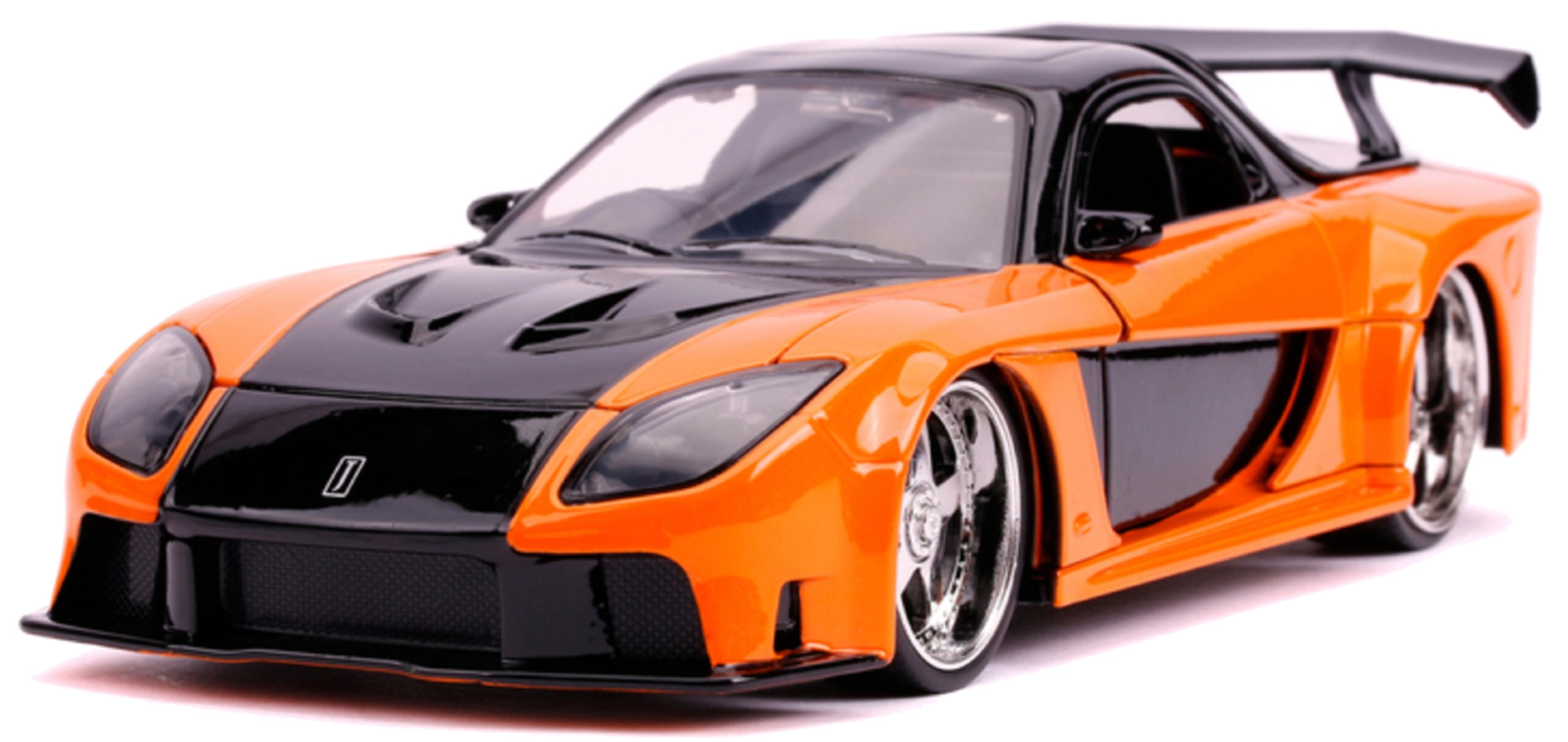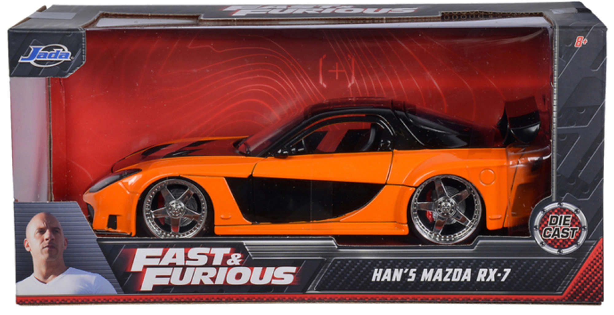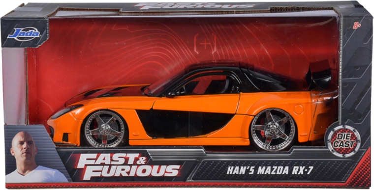 Model autentic al mașinii MAZDA RX-7 din seria de filme FAST & FURIOUS de la Jada Toys îi va încânta atât pe colecționari, cât și pe copii. Oferă caroserie metalică, uși și capotă funcționale și detalii realizate cu precizie. Lungimea modelului este de 19 cm, ideal atât ca decorațiune, cât și pentru joacă.
