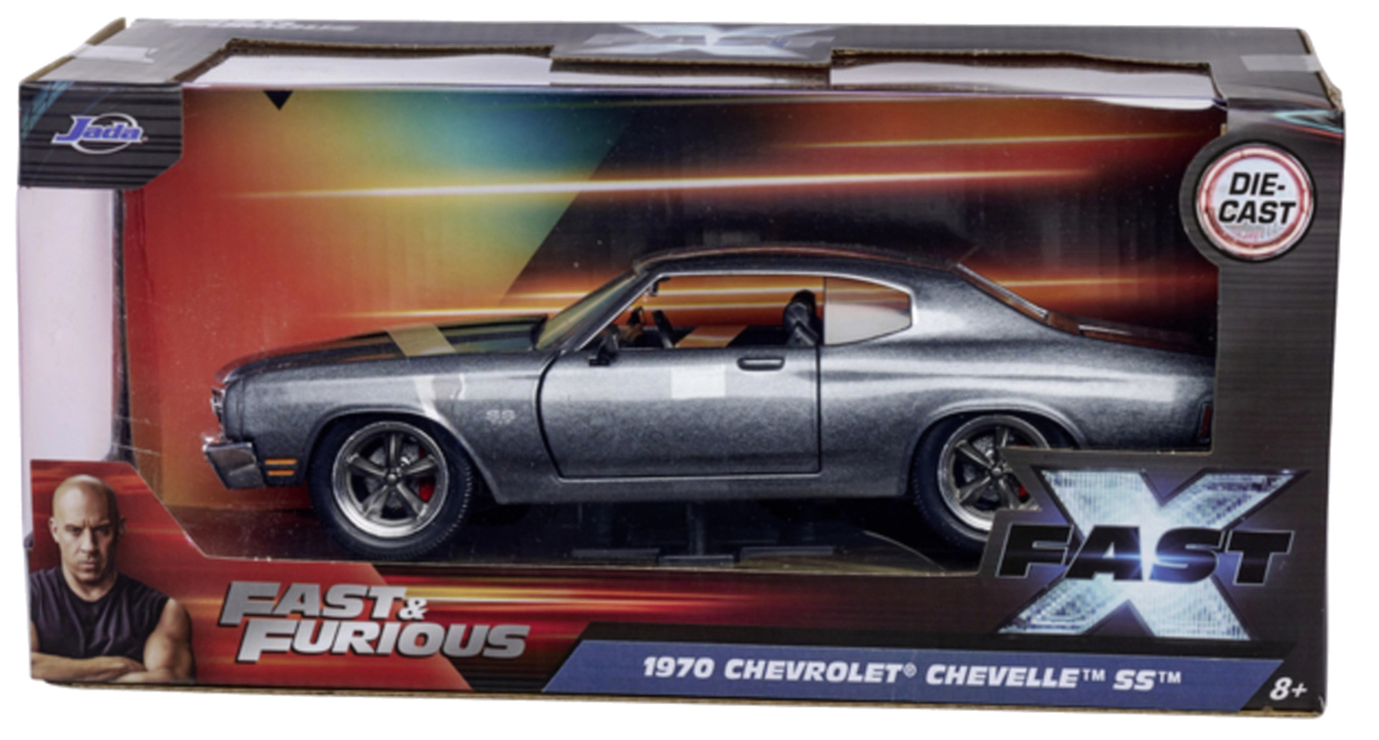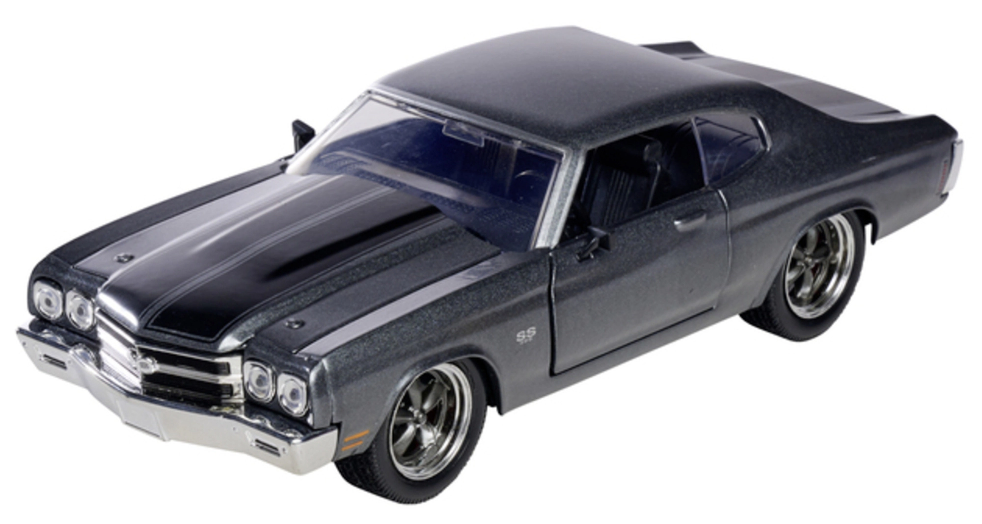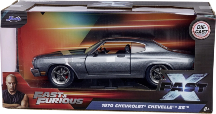 Model de colecție detaliat de la Jada Toys inspirat de seria FAST & FURIOUS. Oferă caroserie metalică, uși și portbagaj funcționale și proporții fidele ale mașinii iconice 1970 Chevrolet Chevelle SS cu lungimea de 19 cm – ideal pentru fanii filmelor și ca decorațiune stilată.