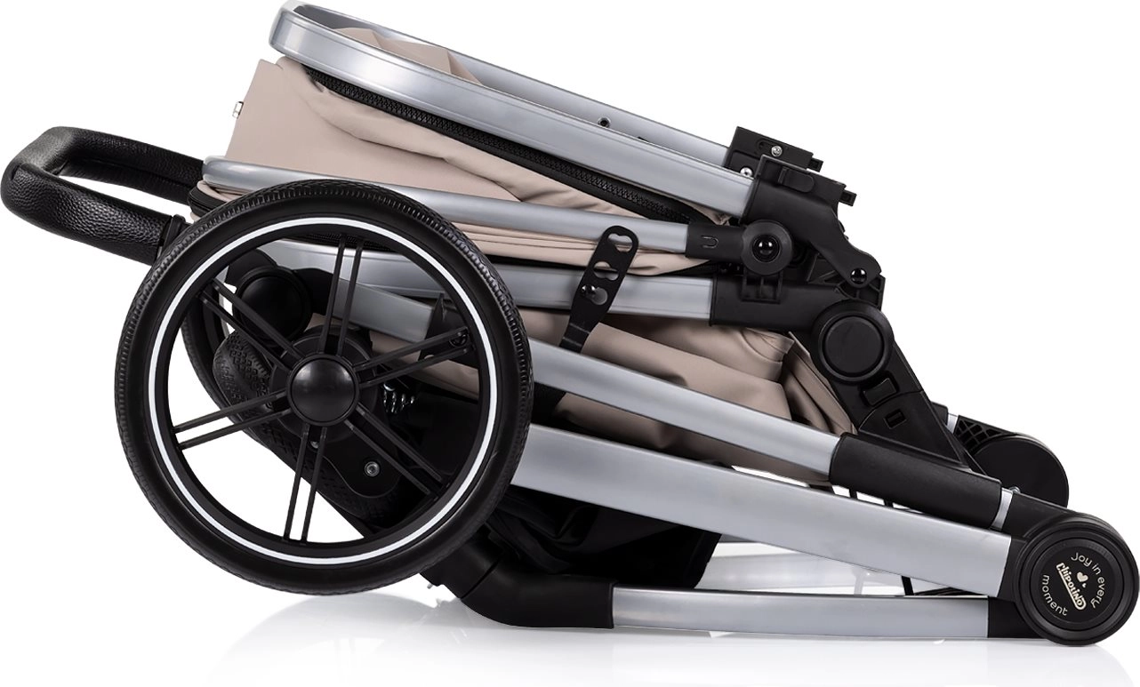 Roțile față și spate sunt suspendate, iar posibilitatea de blocare a roților frontale asigură stabilitate și confort pe trotuarele urbane și pe teren denivelat.
