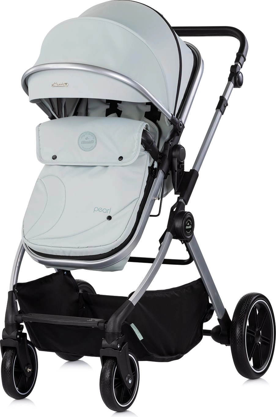 Căruciorul 2în1 CHIPOLINO PEARL, stilat și practic, combină designul modern, confortul pentru bebeluș și manevrarea ușoară pentru părinți. Partea sport se transformă simplu într-o landou adânc pentru nou-născut; are copertină mare, extensibilă, cu fereastră, mâner reglabil pe înălțime, roți cu suspensie și coș spațios pentru toate necesarele.