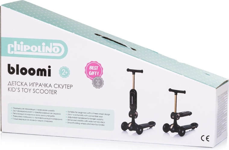 Trotineta/bicicleta de echilibru CHIPOLINO Bloomi 2 în 1 este alegerea ideală pentru primele plimbări ale copiilor. Datorită șezutului, cei mai mici se pot împinge stând jos și pot trece treptat la mers independent în picioare. Construcția cu trei roți asigură stabilitate ridicată, iar platforma lată antiderapantă și frâna spate de picior oferă siguranță la fiecare pas.