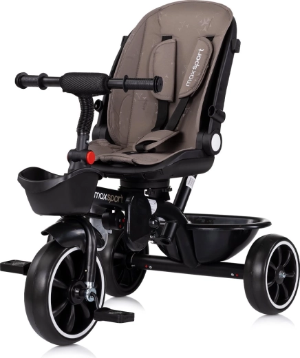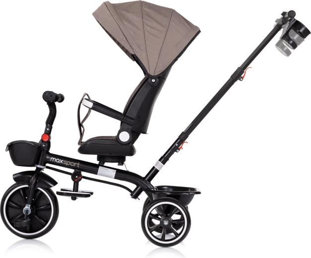 Această tricicletă inteligentă îmbină confortul unui cărucior cu bucuria primei curse. Cei mici pot merge cu ajutorul părinților datorită mânerului lung și echipării de siguranță, iar cei mai mari pot pedala independent. Copertina, mânerul parental și bara de siguranță detașabile permit trecerea rapidă din modul pentru toddleri la tricicletă pentru preșcolari.