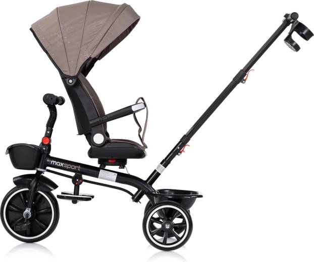 Părintele poate conduce comod tricicleta cu ajutorul mânerului lung, iar mai târziu copilul trece la pedalare independentă. Copertină, bară și mâner detașabile.