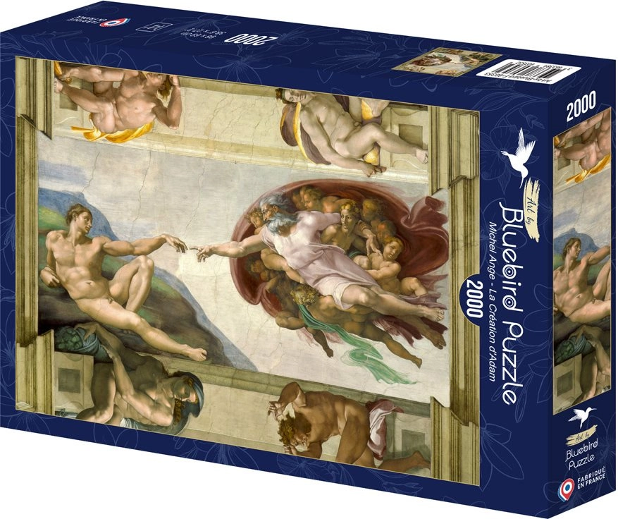 Descoperiți frumusețea atemporală a artei cu puzzle-ul BLUEBIRD „Creația lui Adam”. Cu 2000 de piese, oferă o asamblare plăcut de solicitantă, iar după finalizare creează o imagine impresionantă de aproximativ 98 × 69 cm – perfectă pentru înrămare și expunere.