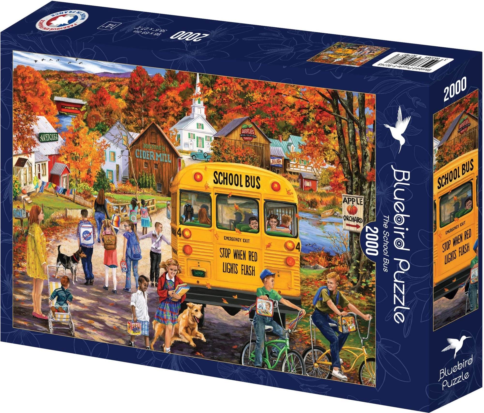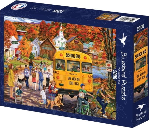 Puzzle-ul de mari dimensiuni BLUEBIRD, cu scena clasicului autobuz școlar, va încânta pe oricine iubește asamblarea liniștită și execuția de calitate. După finalizare, veți obține o imagine impresionantă de aproximativ 98 × 69 cm, perfectă pentru expunere.