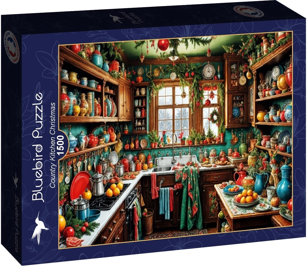 Bucurați-vă de atmosfera sărbătorilor cu puzzle-ul de calitate BLUEBIRD, cu motivul unei bucătării de Crăciun nostalgice. Asamblarea din 1500 de piese oferă o provocare plăcută, o relaxare excelentă și distracție pentru întreaga familie. După finalizare, obțineți o imagine impresionantă cu dimensiunea de aprox. 85 × 61 cm, care va arăta grozav pe perete sau pe raft.