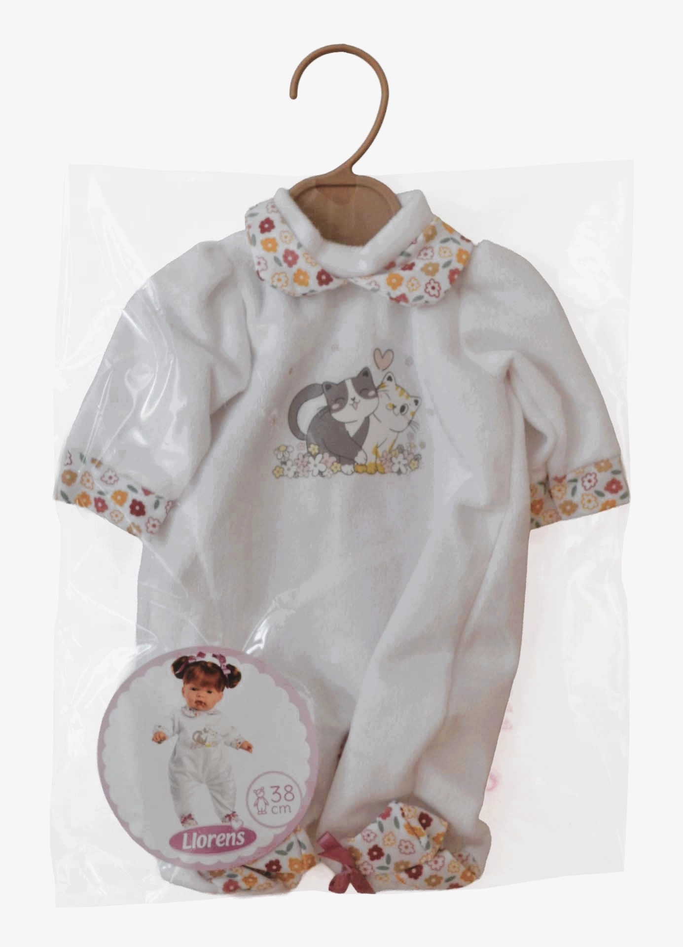 Stilată hăinuță întregă pentru păpușă de 38 cm de la marca LLORENS, realizată manual în Spania. Se potrivește perfect păpușilor de această mărime și este ideală pentru joacă creativă și schimbat ținute. Livrată într-un ambalaj din plastic cu umeraș. Potrivită pentru copii de la 3 ani.