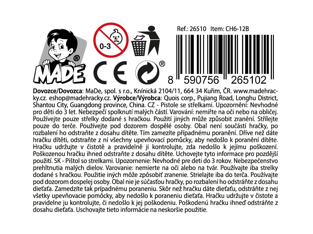 O pistolă pentru copii cu proiectile, lungime 28,5 cm, oferă joacă de acțiune sigură pentru băieți de la 3 ani. Datorită construcției ușoare din plastic și manevrării facile, este ideală pentru după-amiezi pline de aventură. Livrată într-o cutie deschisă pentru despachetare rapidă și joacă imediată.