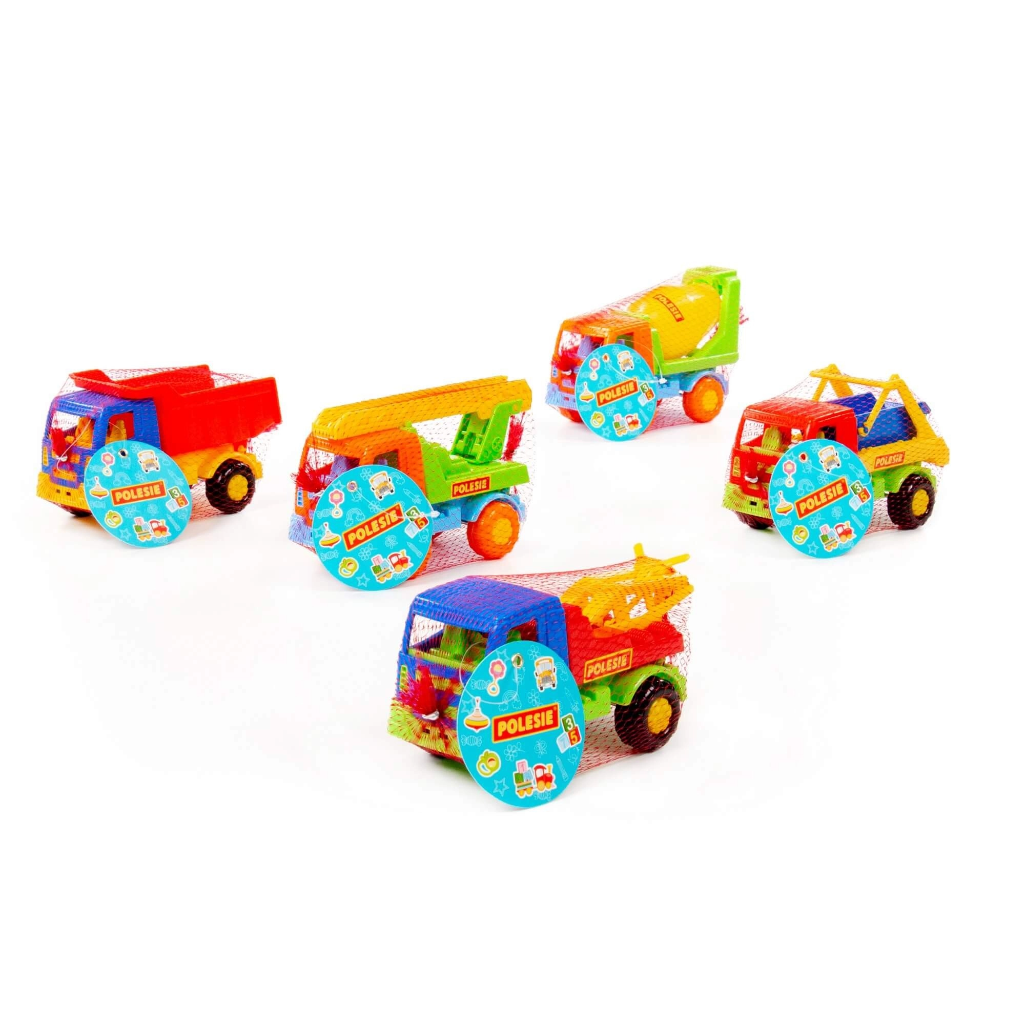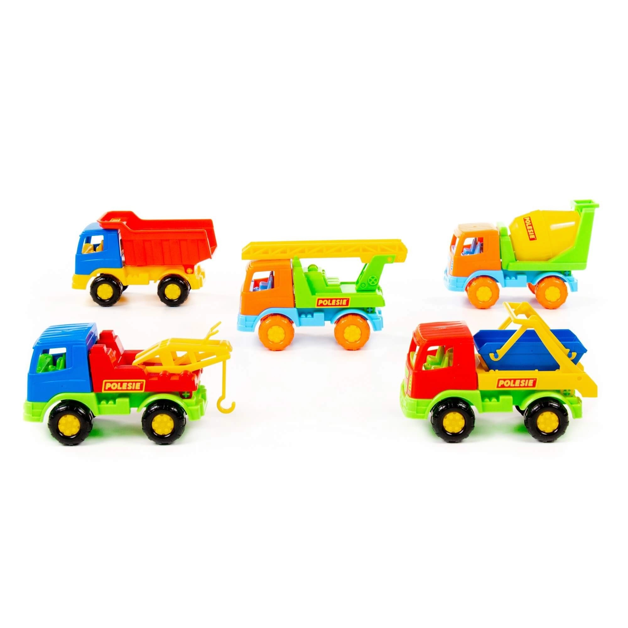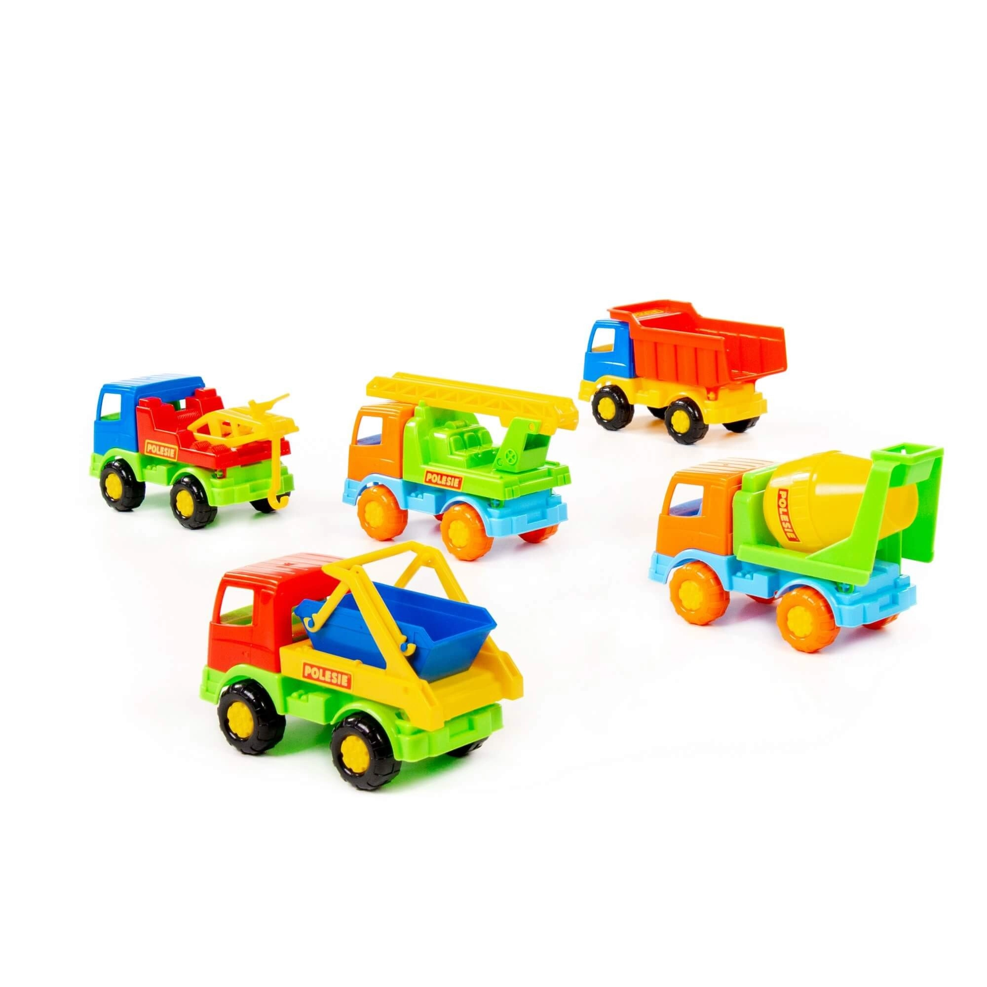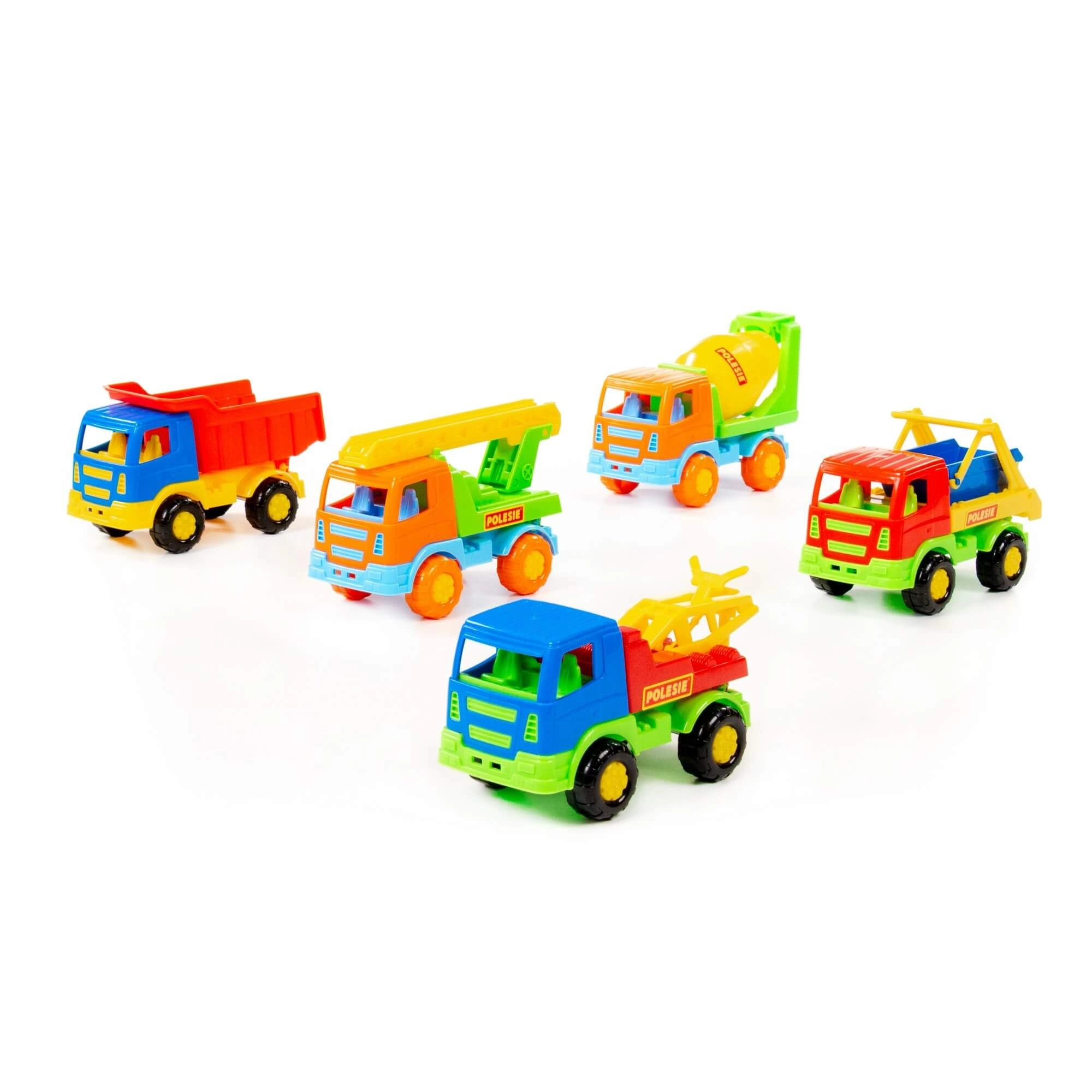 - Diferite tipuri de vehicule: basculantă, betonieră, mașină cu scară, vehicul cu cârlig, container de șantier (livrate în funcție de mixul actual)