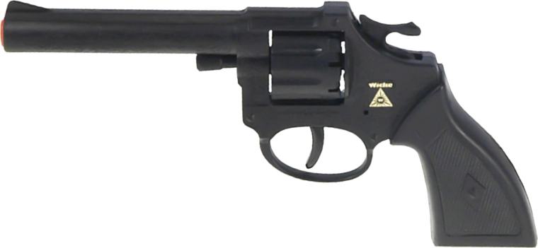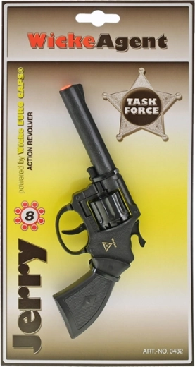 Pistol cu capsă distractiv pentru micii pistolari și aventurieri. Construcție ușoară și rezistentă din plastic, lungime 19 cm. Compatibil cu capse cu 8 focuri pentru un efect sonor autentic și multă distracție plină de acțiune.