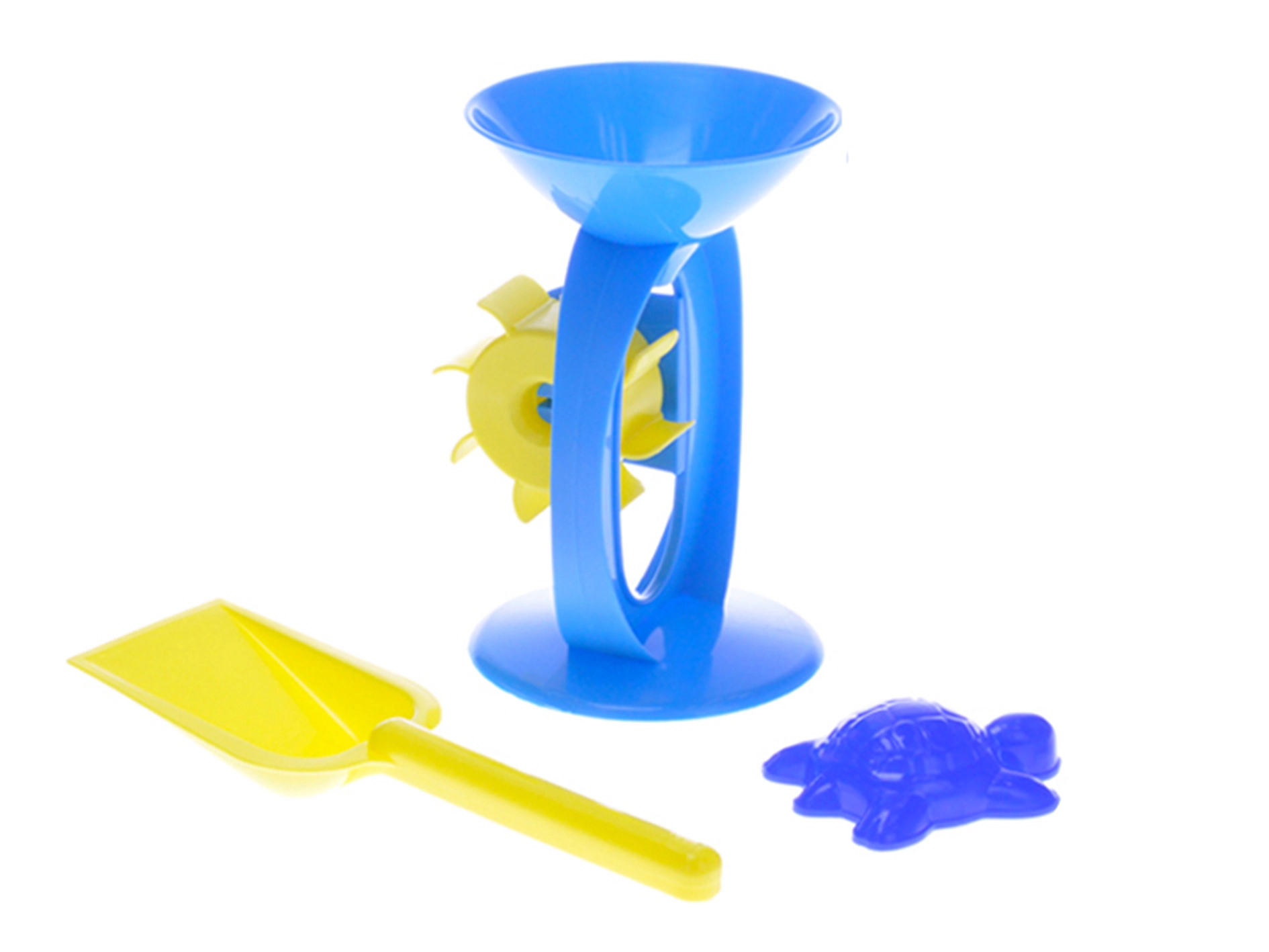 Lopățica ușoară se potrivește perfect în mâinile copiilor și ușurează luarea nisipului și a apei pentru alimentarea morii și crearea formelor.