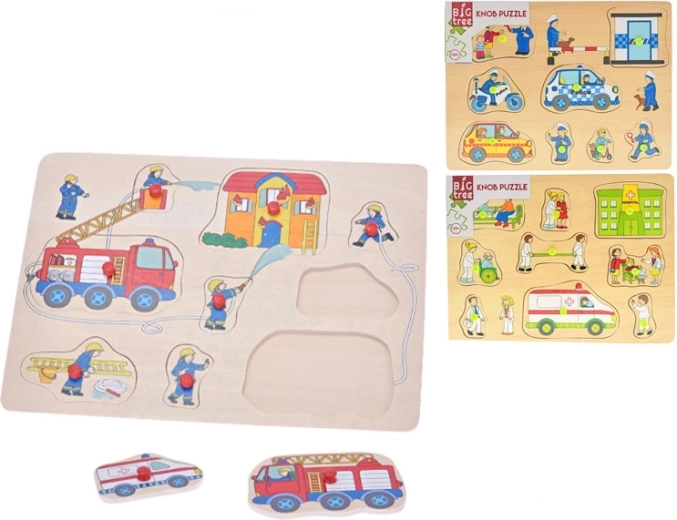 Acest puzzle din lemn, cu motive ale poliției, pompierilor și serviciului de ambulanță, îi va încânta pe micii exploratori. Datorită execuției robuste și marginilor netede, este sigur și plăcut la atingere. Ilustrațiile colorate invită la joacă și îi ajută pe copii să învețe să recunoască forme, culori și vehicule ale serviciilor de urgență.