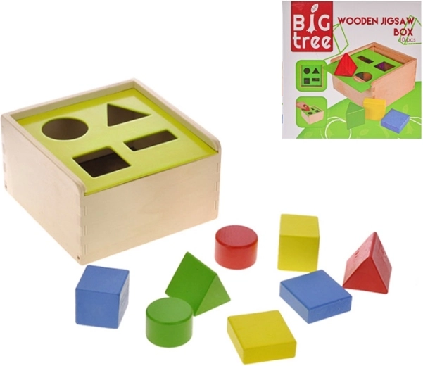 Sortatorul din lemn Big Tree este o jucărie ideală pentru copiii de la 12 luni, care susține motricitatea fină, gândirea logică și coordonarea mână–ochi. Cuburile colorate de forme diferite se introduc în deschiderile corespunzătoare, iar după finalizare se scot prin glisarea capacului, ceea ce îi conduce natural pe cei mici către explorare creativă și răbdare.