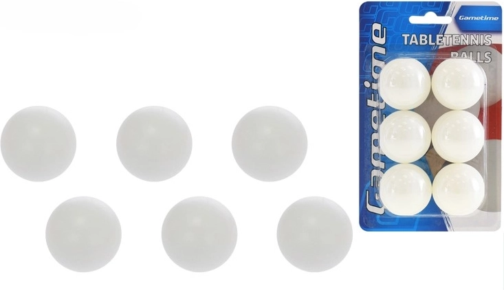 Ambalajul pe card conține șase mingi albe – un stoc ideal pentru serii de antrenament și joc acasă.