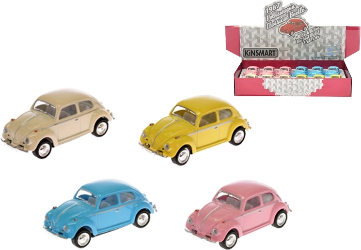 Model detaliat al legendarului VOLKSWAGEN BEETLE 1967 la scară 1:64 îi va încânta pe micii și marii pasionați de mașini. Datorită construcției metalice, detaliilor autentice și mecanismului pull-back, este suficient să tragi modelul înapoi și pornește singur înainte. Lungime 6,5 cm, culori pastel și execuție de calitate fac din această piesă un accesoriu grozav pentru joacă și colecție.