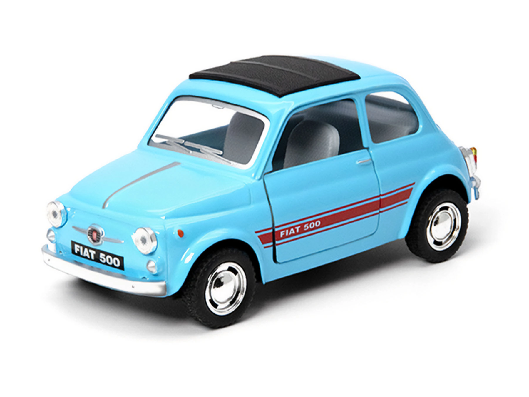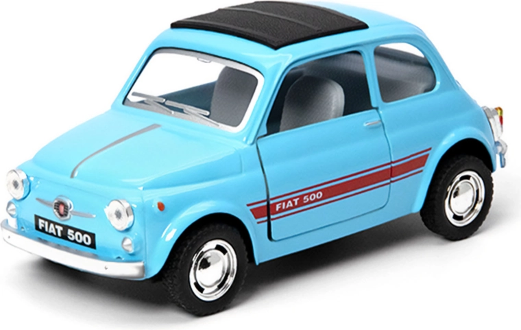 Model metalic detaliat FIAT 500 la scară 1:24 care va încânta atât copiii, cât și colecționarii. Datorită mecanismului pull-back, după armare pornește singur, oferă construcție rezistentă din metal și plastic și patru culori atractive pentru alegere după gust.