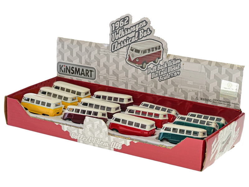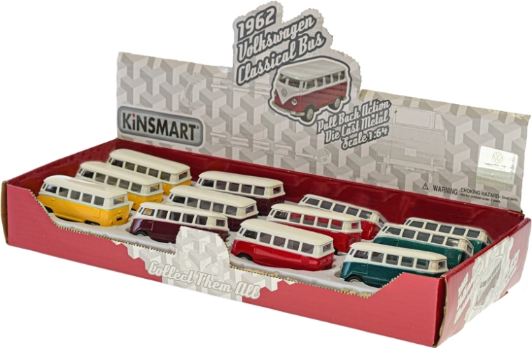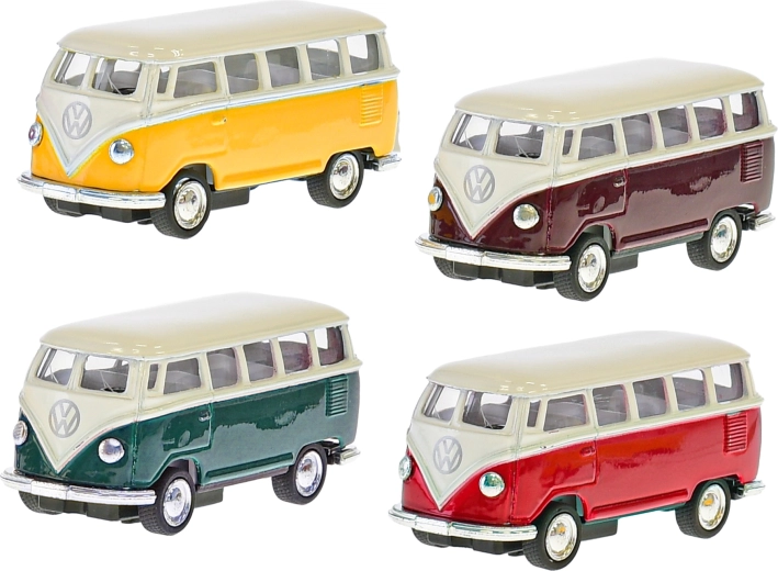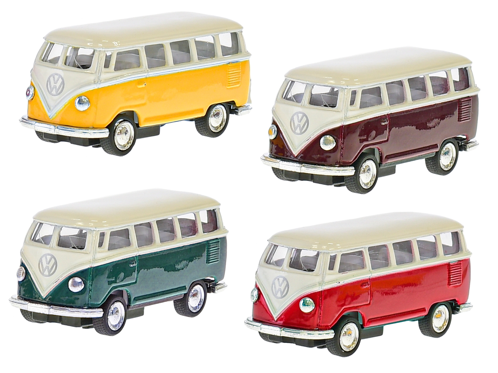 Modelul metalic Kinsmart VW Classic autobuz 1962 redă fidel designul iconic al microbuzului VOLKSWAGEN din anii ’60. Datorită execuției precise și detaliilor autentice, arată extraordinar de realist și se remarcă atât pe raft, cât și în timpul jocului. Mecanismul pull-back asigură o armare ușoară și o mișcare sprintenă înainte, sporind distracția.