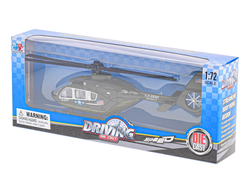 Acest model metalic de elicopter la scară 1:72 reproduce fidel aspectul unui elicopter real. Datorită combinației dintre metal și piese din plastic atent finisate, modelul are un aspect realist și este plăcut de rezistent. Ambalat într-o cutie cadou cu fereastră – ideal pentru expunere sau ca un cadou stilat.