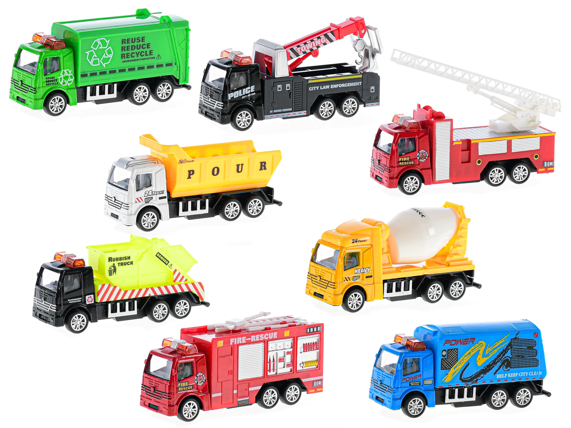 Alege dintre 8 tipuri: gunoier, camion de tractare, pompieri, basculantă, betonieră și mașină de curățat străzi – ideal pentru a-ți crea propriul oraș.
