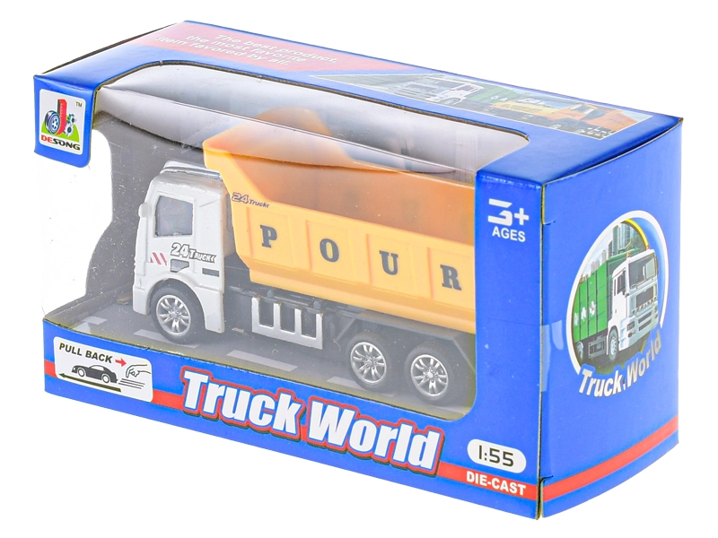 Model de camion basculant la scară 1:55, cu benă funcțională și mers autonom după întindere, pentru și mai multă distracție.