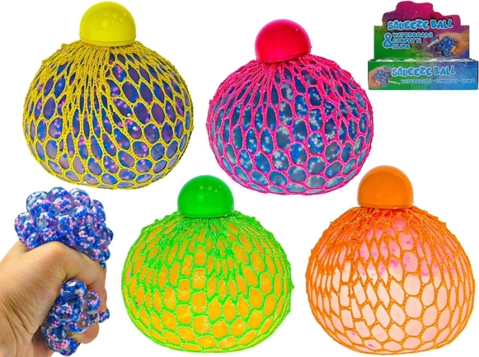 Mingea cu plasă extensibilă și biluțe este un accesoriu antistres ideal pentru copii și adulți. La strângere, biluțele moi se deplasează și trec prin plasă, creând un efect colorat încântător și oferind o stimulare tactilă plăcută. Datorită dimensiunii compacte, încape în buzunar sau în geantă și este mereu la îndemână când ai nevoie să eliberezi tensiunea sau să te distrezi.