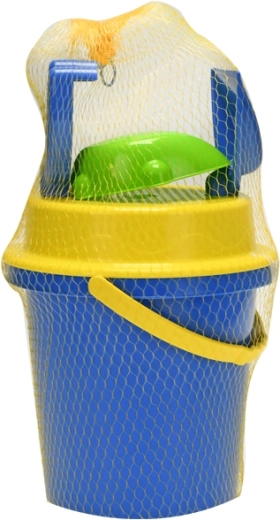 Un set pentru nisip pentru copii distractiv și sigur, într-o plasă practică, conține tot ce este necesar pentru joaca la plajă sau în nisipar. Include un găleată de 17 cm, sită, lopățică, greblă și formă. Construcție ușoară din plastic, margini rotunjite și execuție potrivită de la 10 luni pentru multă distracție în siguranță.