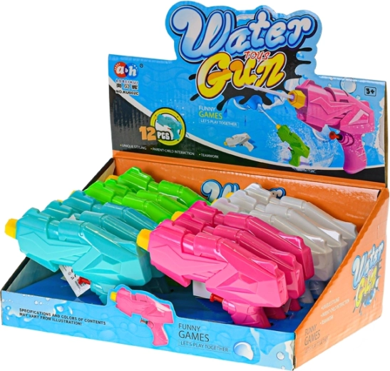 Pistolul este disponibil în patru culori atractive – verde, albastru, alb și roz – astfel încât fiecare copil își poate alege favorita. Pachetul conține 12 bucăți, fiind perfect pentru jocuri de grup, petreceri de zi de naștere sau bătălii cu apă în familie.