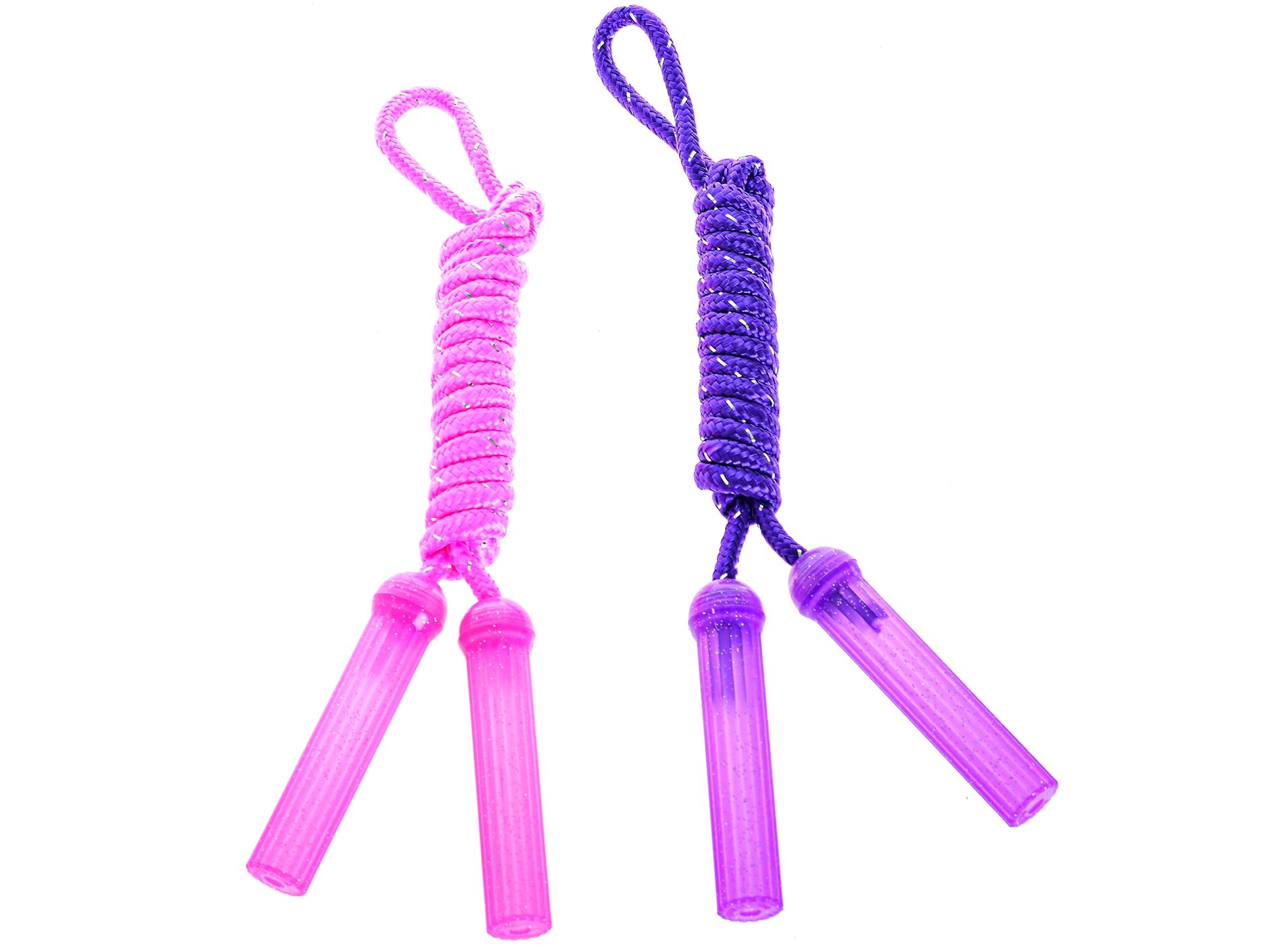Mânerele ușoare din plastic, cu striații, se potrivesc bine în mâna copilului și oferă siguranță la fiecare săritură.
