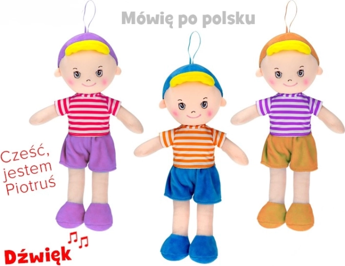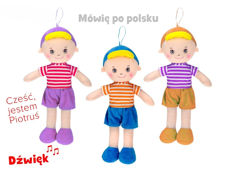 Păpușa moale Piotruś este primul companion ideal, atât în pătuț, cât și în călătorii. Materialul textil catifelat invită la îmbrățișări și ajută la inducerea unui sentiment de siguranță și liniște. Datorită funcției interactive de vorbire și cânt în poloneză, copilul se familiarizează în mod natural cu sunetele și ritmul limbii și își dezvoltă percepția auditivă.