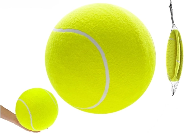 Distracție acasă și afară: această minge de tenis uriașă cu diametrul de 24 cm îi va încânta pe toți micii neastâmpărați. Datorită suprafeței moi, culorii neon intense și ambalajului practic în plasă, este ideală pentru aruncat, prins și jocuri în comun, atât în curte, cât și în cameră.