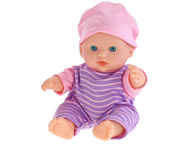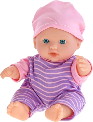 Păpușa drăgălașă așezată, cu înălțimea de 20 cm, este un companion ideal pentru copiii de la 18 luni. Are un corp din plastic solid pentru rezistență ridicată și întreținere ușoară. Datorită dimensiunilor compacte, copiii o pot lua oriunde. Sunt disponibile trei variante de pijama – dungată, albă și roz.
