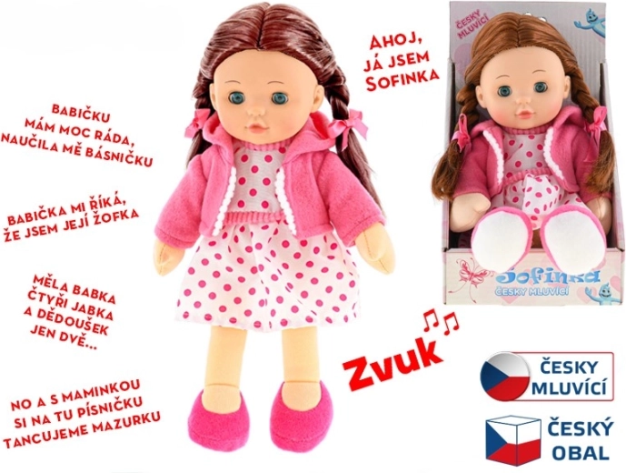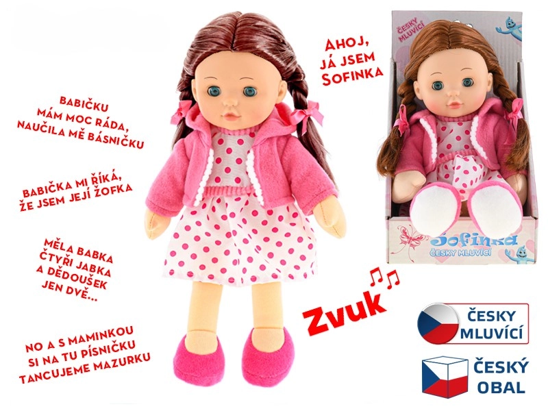 Păpușa Sofinka este un companion ideal pentru copiii de la 3 ani. Trupul ei moale este plăcut la atingere și îmbie la alint, în timp ce aspectul realist cu păr castaniu și ochi clipitori stimulează imaginația copiilor. În plus, Sofinka vorbește cehă, ceea ce dezvoltă în mod distractiv comunicarea și empatia.