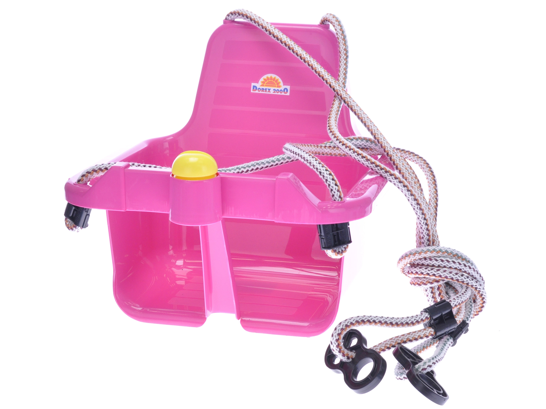 Acest leagăn roz drăguț este o alegere excelentă pentru primele momente de legănare. Datorită protecției solide în partea din față, oferă copiilor stabilitate și siguranță, în timp ce claxonul integrat adaugă un element distractiv la fiecare balans.