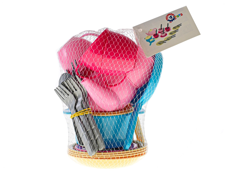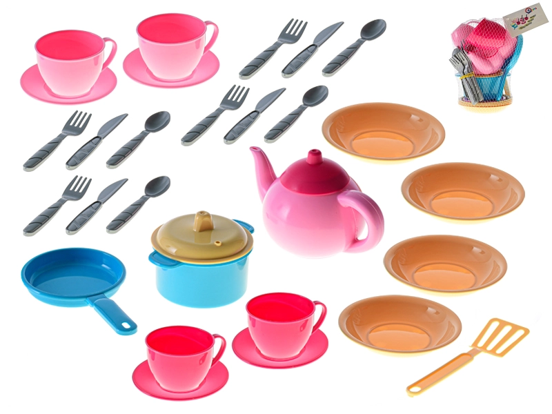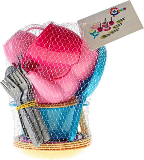 Oferiți-le copiilor propria bucătărie cu tot ce trebuie. Setul de veselă pentru copii, în plasă practică, aduce echipare completă pentru jocul de-a gătitul – de la pregătirea „mâncărurilor” până la ceaiul de după-amiază. Piesele sunt ușoare, sigure și atrăgătoare coloristic, astfel încât copiii le vor îndrăgi rapid.