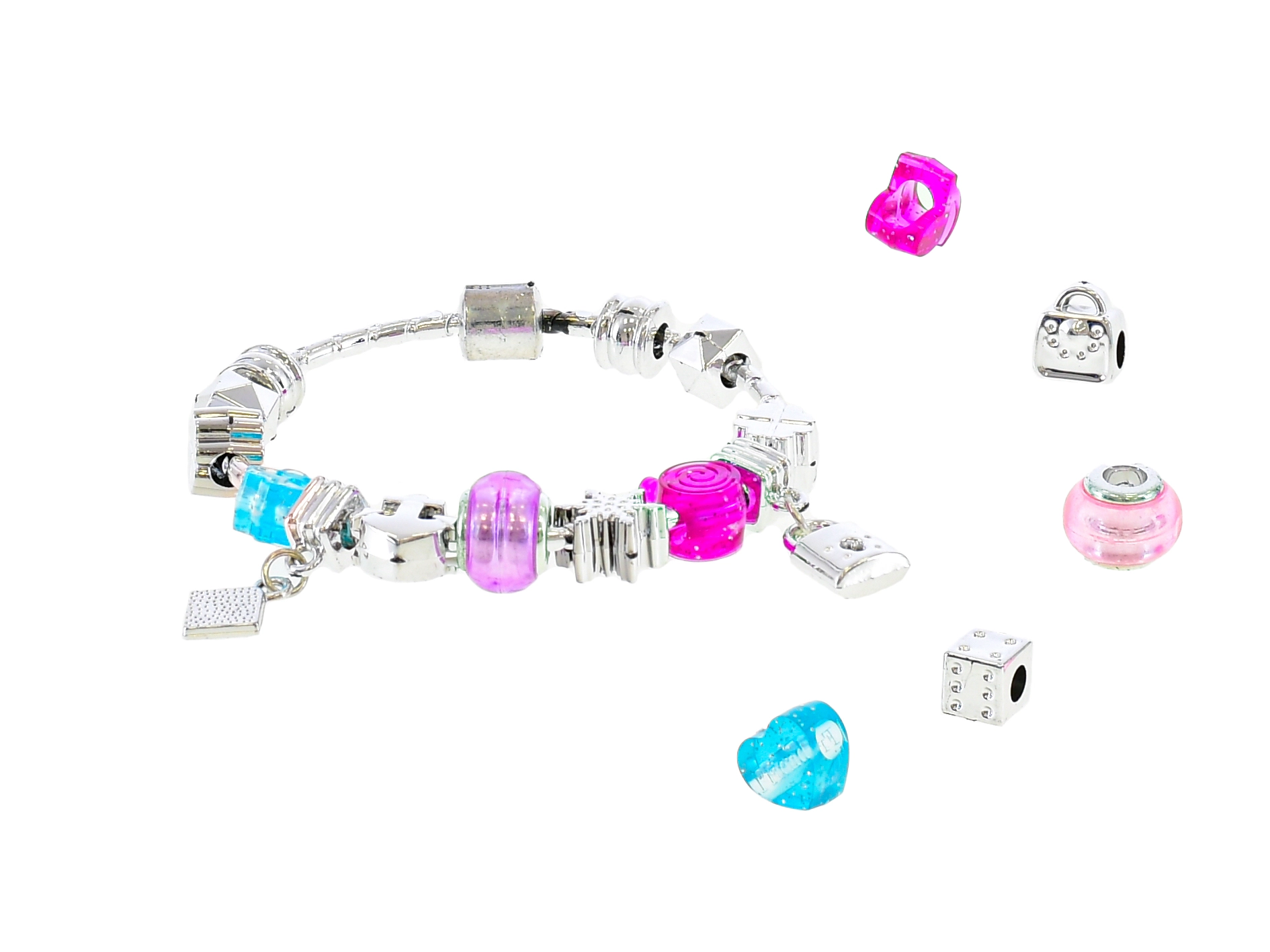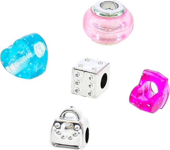 Setul creativ conține o brățară rezistentă din plastic și diverse pandantive și mărgele cu orificiu mare pentru o înșirare confortabilă. Copiii își pot alcătui în câteva clipe propria combinație colorată și pot schimba aspectul bijuteriei în funcție de ținută sau dispoziție.
