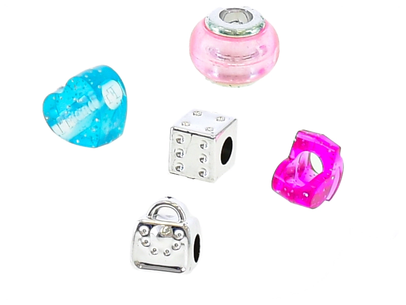 Mărgelele și pandantivele cu orificiu mare le permit copiilor să schimbe rapid aspectul brățării și să creeze combinații originale fără ajutorul adulților.