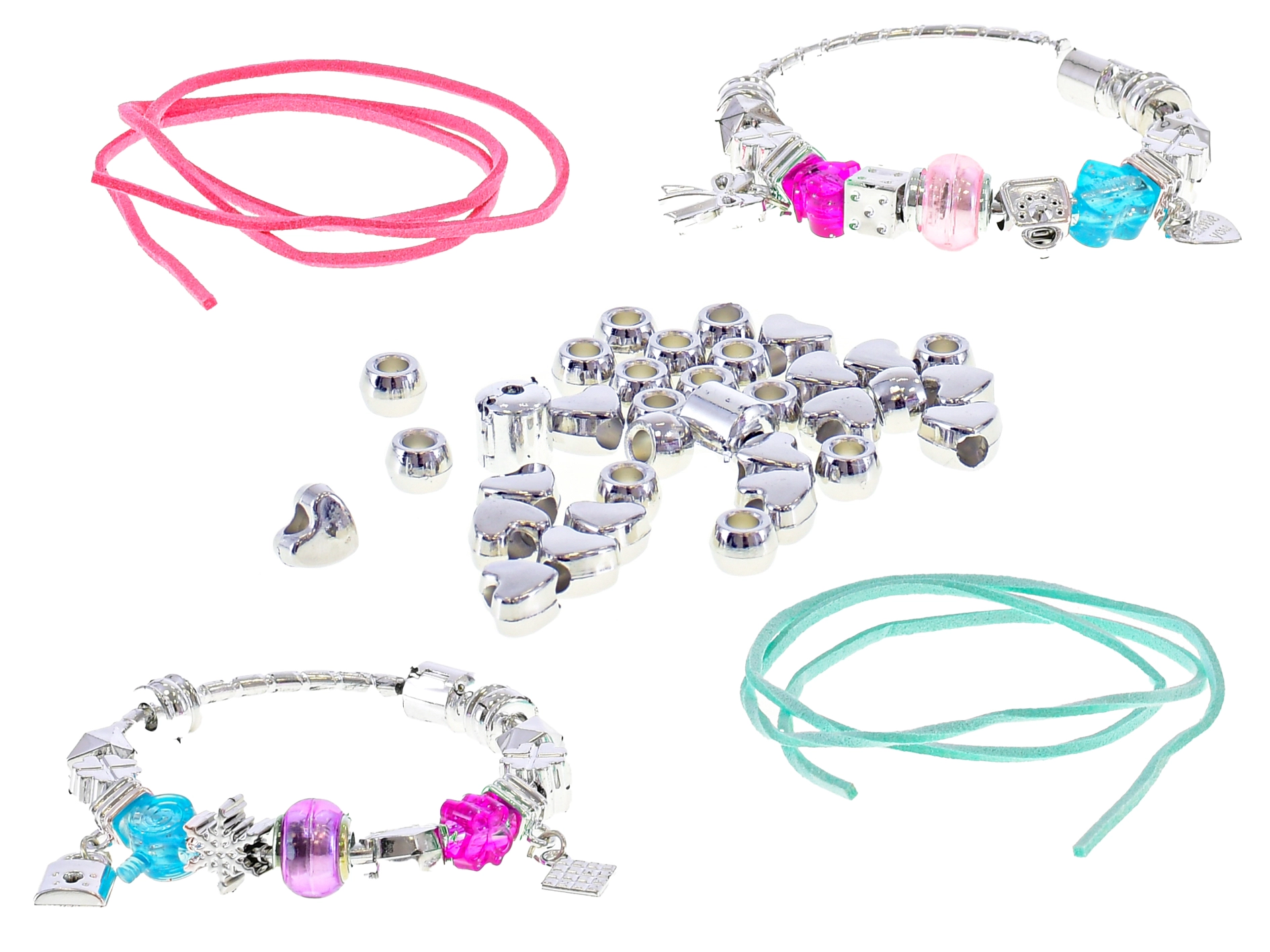 Amestecă culori și forme, combină mărgele metalice și pandantive și creează un aspect unic pentru fiecare brățară.