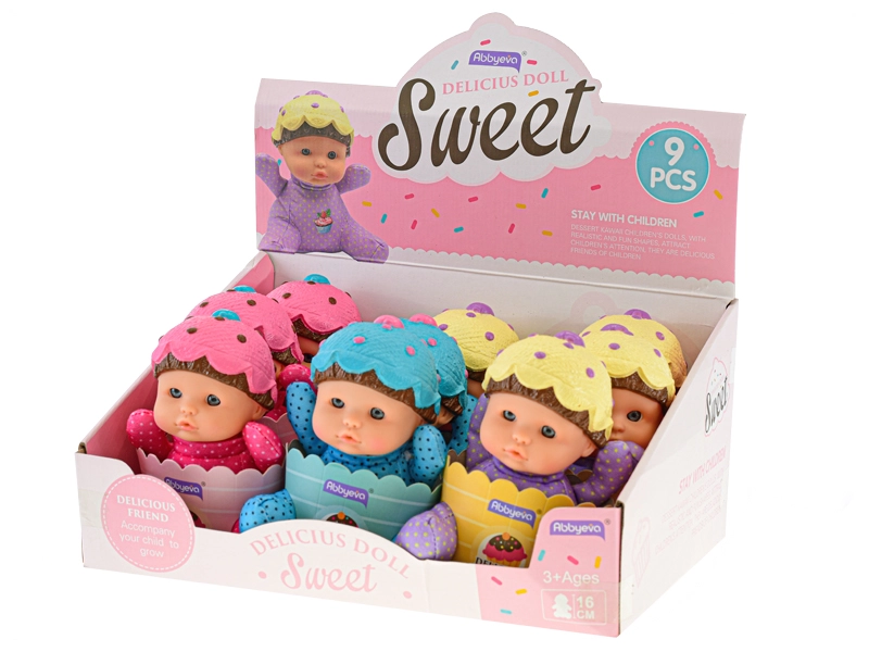 Această păpușă mică într-un coșuleț drăgălaș va încânta orice copil. Datorită corpului moale și plăcut este perfectă pentru îmbrățișat, iar capul și mânuțele realiste din plastic susțin jocurile de rol și îngrijirea bebelușului. Căciulițele colorate tip cupcake și hăinuțele cu buline oferă păpușii un farmec aparte.