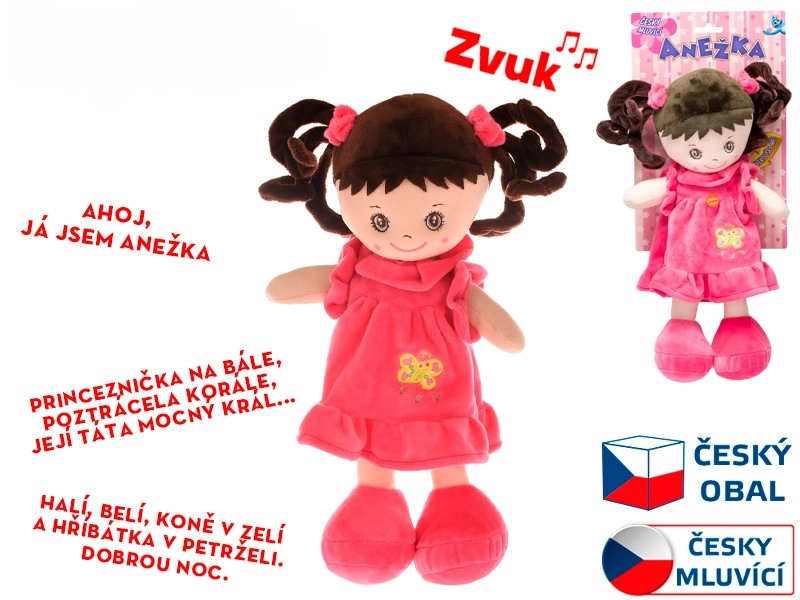 Păpușa Anežka îi va încânta pe cei mai mici prin finisajul delicat și melodiile cehe liniștitoare. Recită poezia „Prințesa la bal” și cântă cântecul de leagăn „Hali, beli”, susținând dezvoltarea vorbirii, percepția muzicală și întărind relația cu limba cehă. Datorită construcției textile moi, este sigură, ușoară și catifelată la atingere.