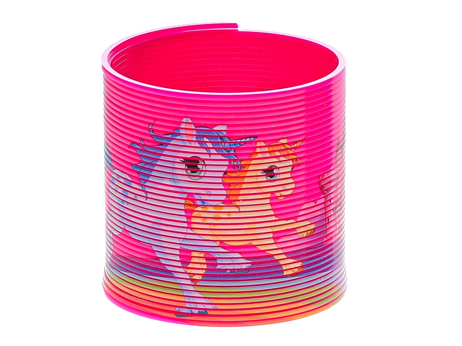 Această spirală colorată din plastic, în stil slinky, îi va fermeca pe micii iubitori de creaturi magice. Arculetul rulează lin pe scări, se întinde și se comprimă plăcut, funcționând și ca jucărie fidget liniștitoare. Plasticul rezistent garantează durabilitate și joacă în siguranță.