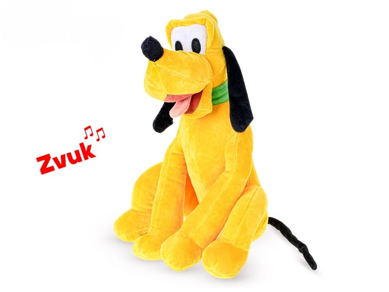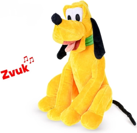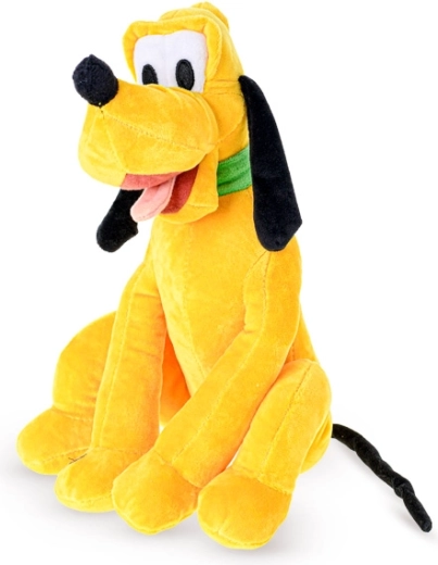 Adorabilul prieten de pluș DISNEY Pluto în poziție așezată va încânta orice copil. Are 30 cm înălțime și, la apăsare, emite sunete amuzante. Este ideal pentru copiii de la 12 luni, iar datorită materialului moale este perfect pentru îmbrățișat și joacă. Pentru funcția de sunet sunt necesare baterii (nu sunt incluse).