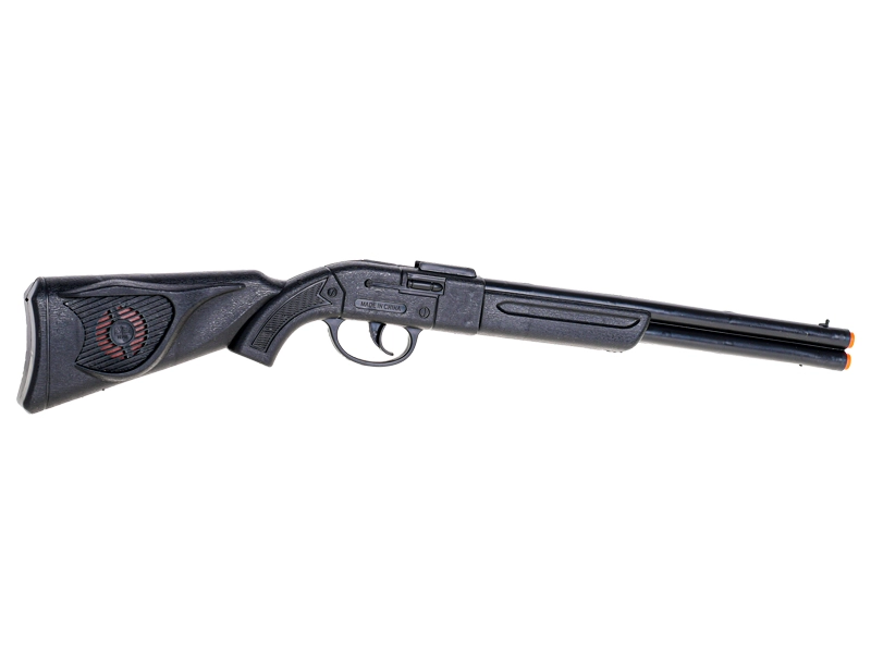 Oferă-le copiilor aventura Vestului Sălbatic cu această pușcă clăpănitoare de cowboy cu lungimea de 50 cm. Jucărie ușoară și ușor de manevrat din plastic rezistent, în culoare neagră, emite un sunet autentic de clăpănit la apăsarea trăgaciului, sporind realismul jocului de-a cowboy-ii. Potrivită de la 3 ani, ambalată practic pe blister/carton.