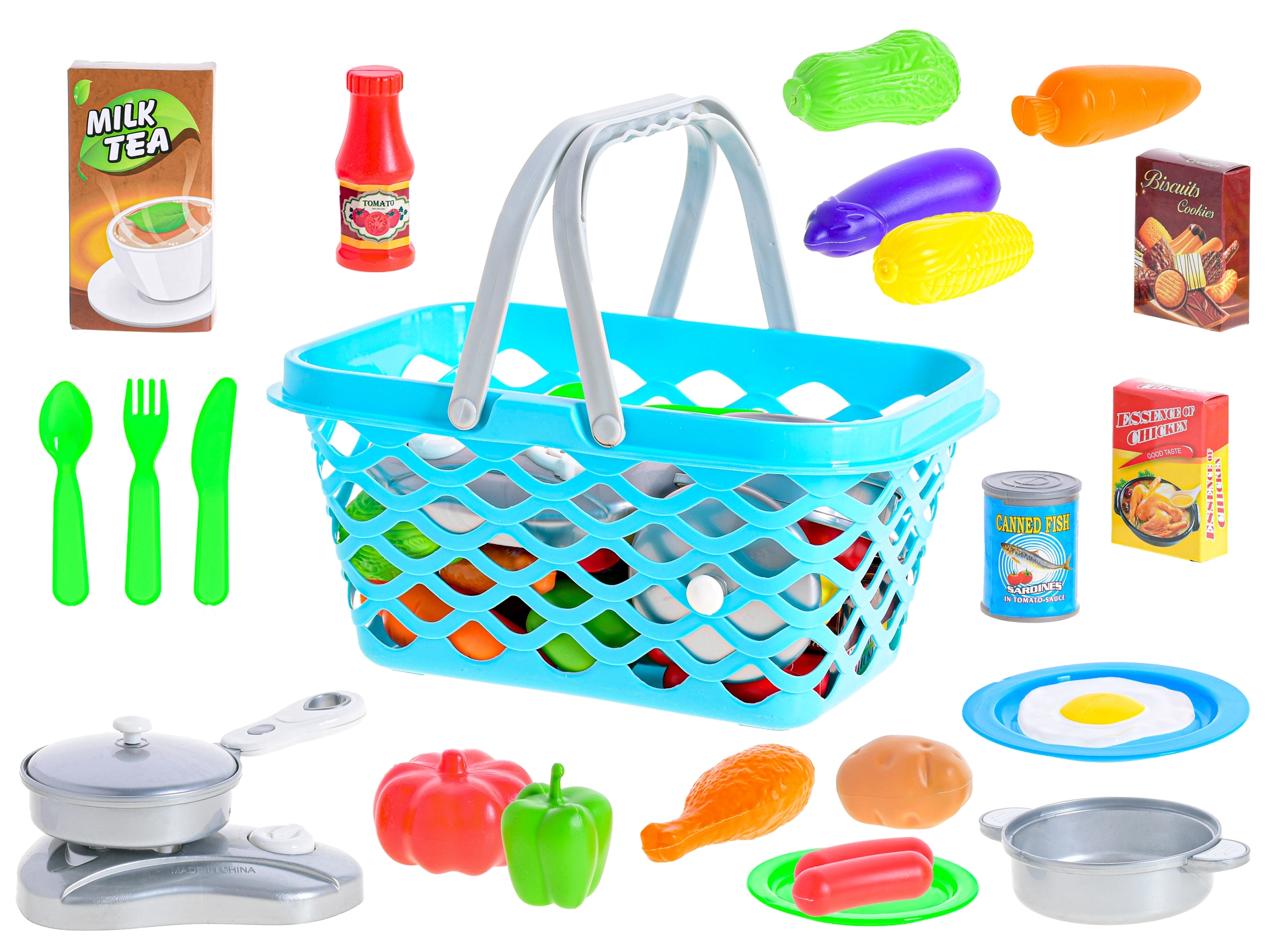 Stimulați imaginația copiilor și rolul micilor bucătari cu setul complet de bucătărie, care combină cumpărăturile și gătitul. Datorită coșului practic, copiii își pot transporta ușor toate componentele și se pot juca oricând și oriunde de-a magazinul sau bucătăria de acasă.