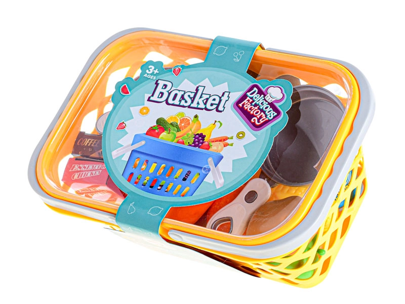 Amuzantul set de bucătărie pentru copii cu coș de cumpărături oferă totul pentru joaca de-a gătitul și cumpărăturile. În pachet găsiți aragaz, oală, tigaie, tacâmuri, farfurii și diverse alimente. Plasticul ușor și rezistent este ideal pentru mânuțe mici, iar coșul facilitează depozitarea și transportul. Disponibil în două culori – galben și albastru. Potrivit pentru copii de la 3 ani.