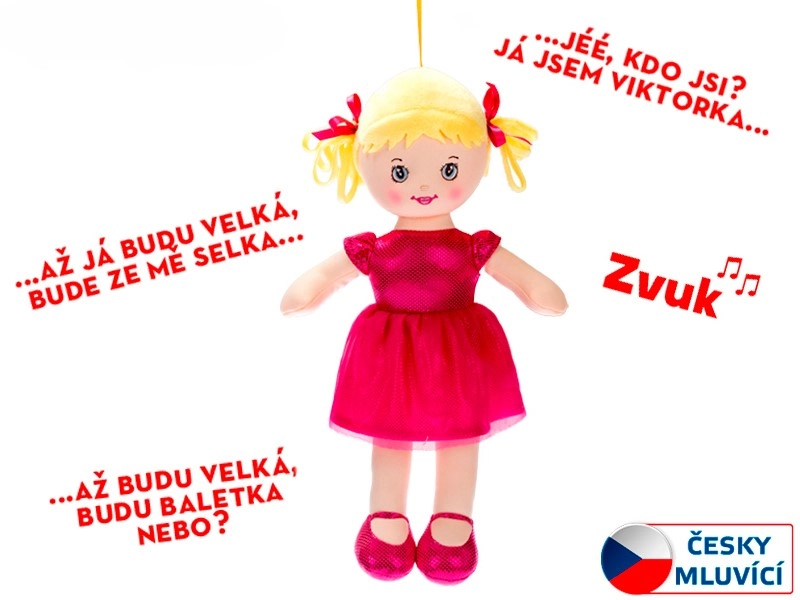 Păpușa Viktorka este o prietenă textilă catifelată, pentru pătuț și pentru călătorii. Cu rochița și pantofiorii ei frumoși, invită la îmbrățișare și joacă, dezvoltând în același timp percepția auditivă și legătura emoțională datorită vocii blânde și cântecelului „Când voi fi mare, voi fi țărăncuță…”.