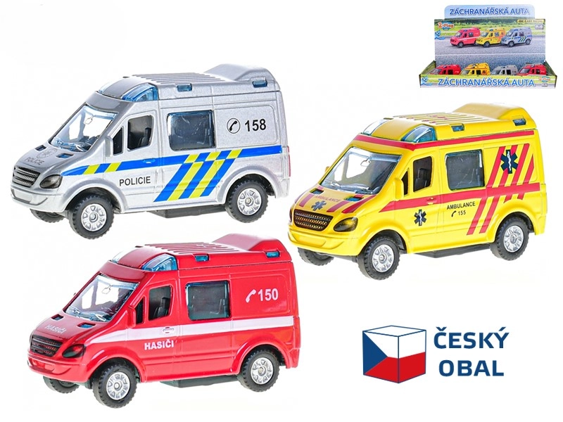 Descoperiți o mașinuță metalică de calitate cu mecanism de întoarcere, care, după ce este trasă înapoi și eliberată, pornește sprinten înainte. Datorită designului fidel al serviciilor de urgență din Cehia, copiii pot interpreta cu ușurință intervenții ale poliției, pompierilor sau paramedicilor. Dimensiunea compactă de 8 cm este perfectă pentru mâna copilului și pentru călătorii.