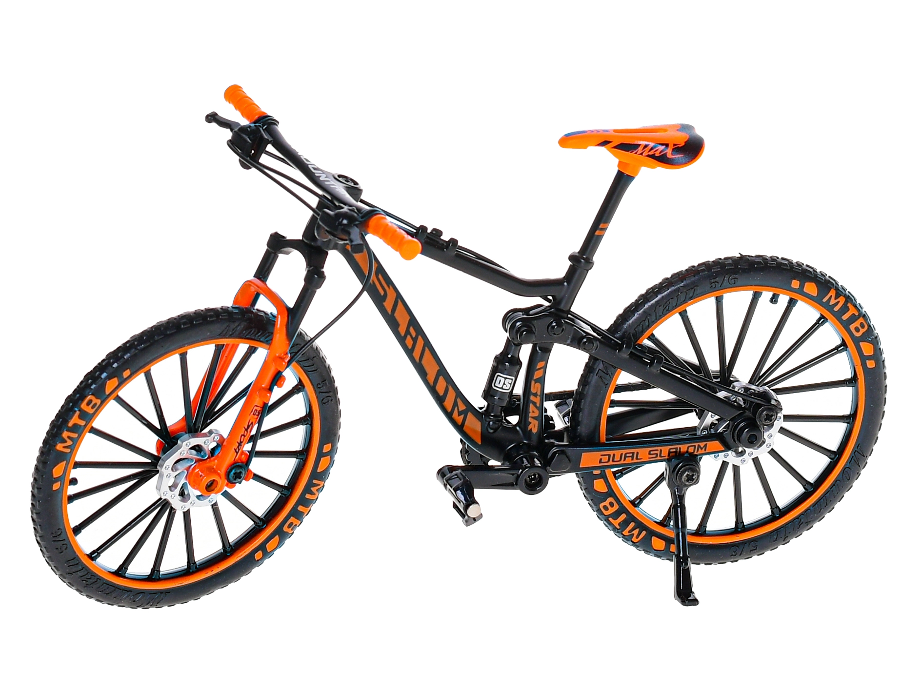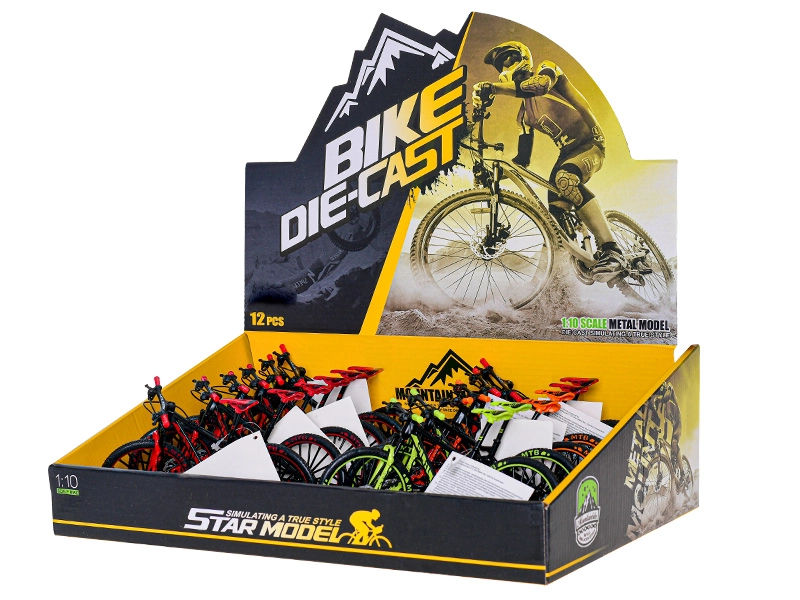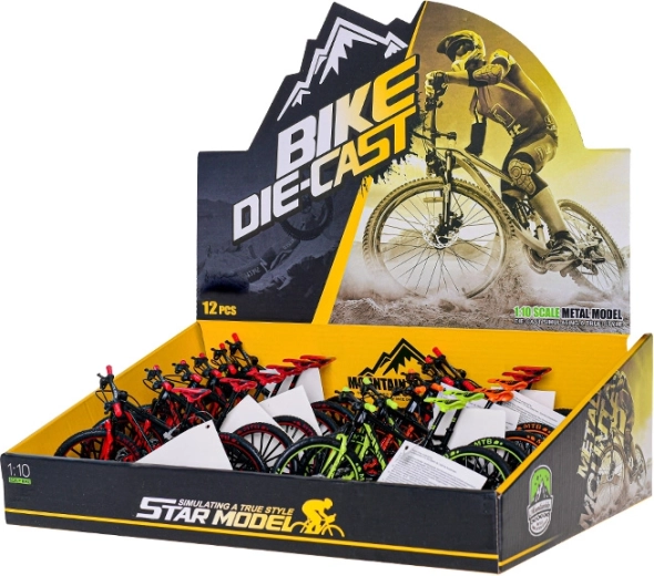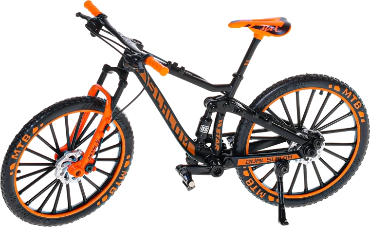 Acest model de bicicletă montană, realizat cu detalii minuțioase la o scară potrivită pentru joacă și expunere, oferă proporții fidele și o execuție de calitate. Părțile metalice conferă robustețe, iar elementele din plastic adaugă detalii precise și greutate redusă. Este disponibil în trei culori atrăgătoare – roșu, galben și portocaliu – pentru ca fiecare să poată alege după propriul stil.