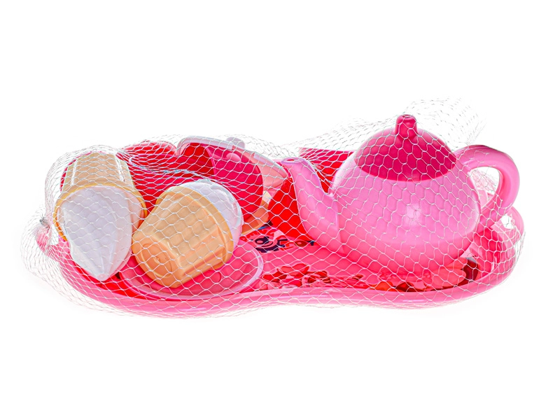 Include o tavă decorativă, ceainic cu capac, cești cu farfurioare, lingurițe, fructe mici și deserturi dulci în stil înghețată. Setul este depozitat într-o plasă practică, astfel încât se transportă și se strânge ușor.