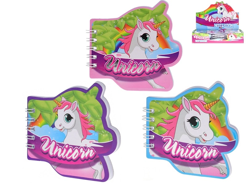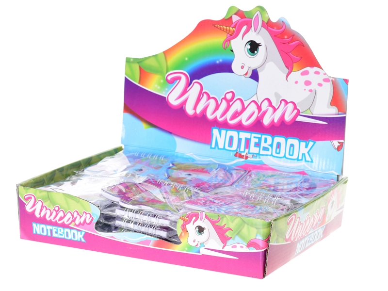 Caietul este disponibil în trei culori îndrăgite – roz, albastru și mov – și atrage prin motivul jucăuș cu unicorn. Este ideal ca mică recompensă, accesoriu de cadou sau parte a rechizitelor școlare pentru copiii de la 3 ani. Fiecare piesă este ambalată individual într-o pungă pentru distribuire ușoară și igienică.